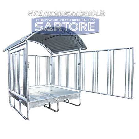 I supporti ad arco alla base della struttura e la copertura rinforzata garantiscono un'ottima stabilità . Facilità nella somministrazione del foraggio grazie alla totale apertura del cancello.