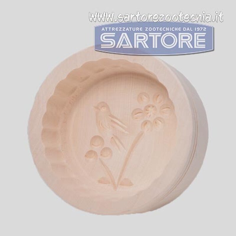 STAMPO PER BURRO IN LEGNO TONDO UCCELLINO+FIORE